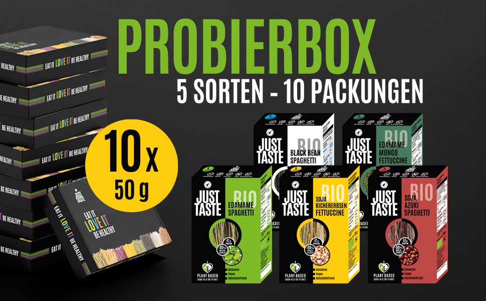 Mit 10 x 50 g Just Taste Nudeln bekommst du die perfekte Auswahl, um dich durch unsere beliebtesten Sorten zu testen: