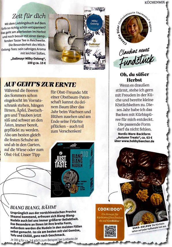 Das Thermomix® Magazin liefert dir das ganze Jahr über saisonale Rezepte, kreative Inspiration und praktische Schritt-für-Schritt-Ideen. In der aktuellen Ausgabe sind auch unsere JustTaste Biang-Biang-Nudeln mit dabei – authentisch, handgemacht und perfekt für ein echtes Geschmackserlebnis in deiner Küche.